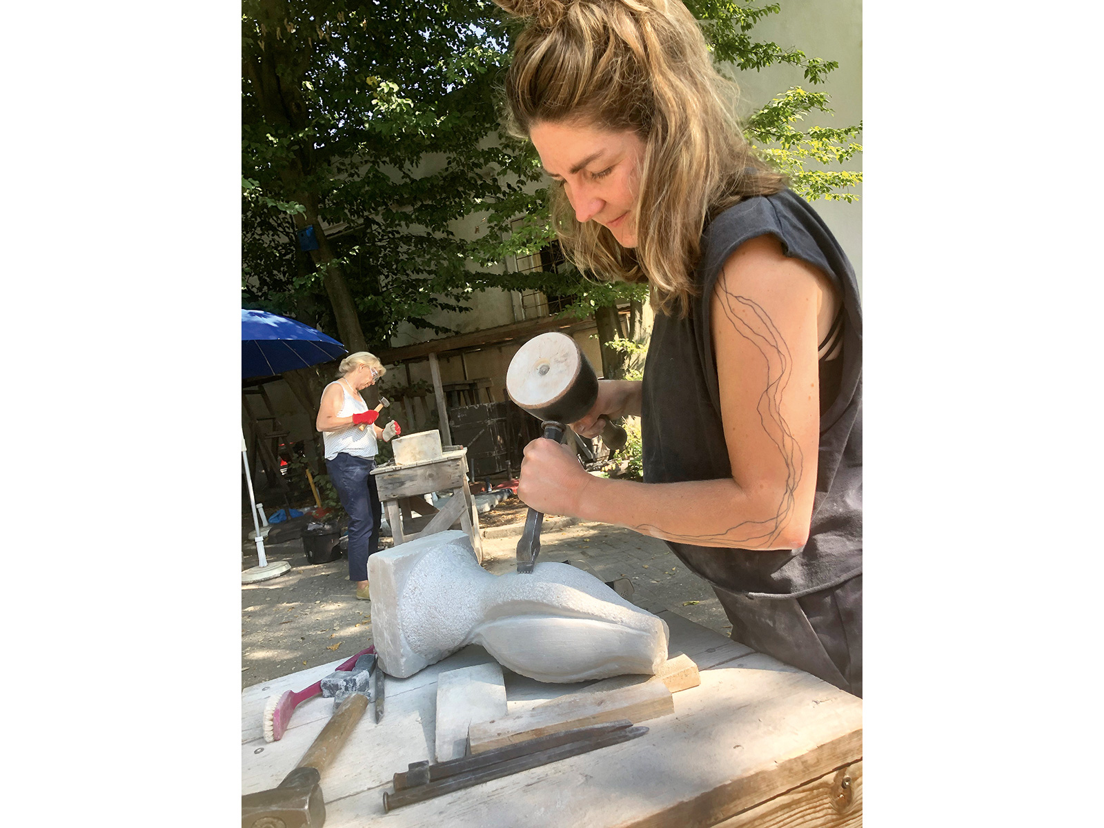 Ganz wichtig: Sie brauchen überhaupt keine handwerklichen oder künstlerischen Vorkenntnisse. Die Lust, sich am Stein körperlich zu betätigen und langsam eine Skulptur entstehen zu sehen, ist die entscheidende Voraussetzung.